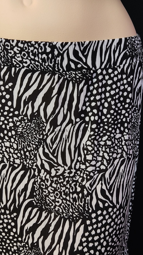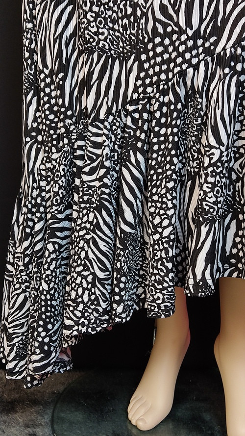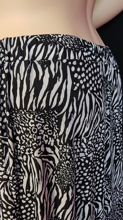Extravagáns és nőies, a klasszikus fekete-fehér kontraszt játékos, modern hatást kelt. Az állatmintás dizájn időtlen és mindig trendi.