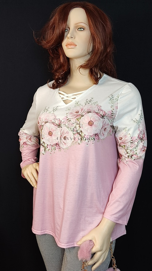 Romantikus és nőies, finom virágmintás felső, amely könnyedén emeli ki az elegáns és magabiztos megjelenést. A mellrésznél található díszítés különleges részletet ad a darabnak.