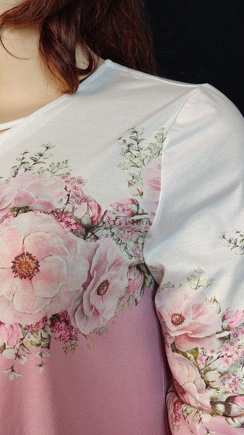 A lágy rózsaszín árnyalat különösen jól áll a világosabb tónusú bőrrel és hajszínnel rendelkezőknek, és tavaszi vagy nyári színtípusok számára ideális választás. Kombináld fehér vagy bézs nadrággal, hogy még inkább kiemeld a felső mintáját. Egy finom nyaklánc vagy gyöngy fülbevaló kiegészíti a romantikus megjelenést.
