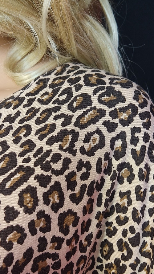 A barna-fekete állatminta kontrasztos hatású, amely leginkább az Ősz és Tél színtípusoknak áll jól. Az arany csillag különösen előnyös a meleg tónusúak számára. Párosítsd fekete nadrággal és magassarkúval, ha elegánsabb megjelenést szeretnél, vagy farmerrel és sportcipővel a laza, hétköznapi stílusért. Arany kiegészítőkkel harmonikus, erőteljes szettet alkothatsz.
