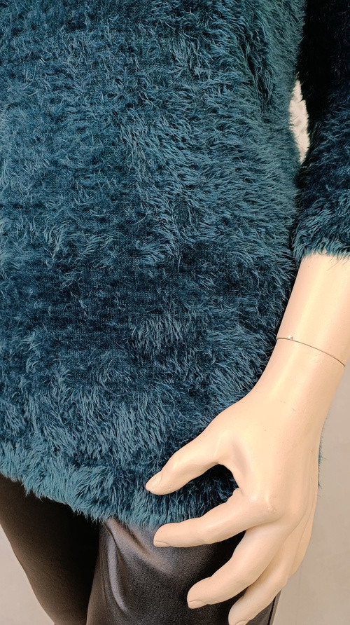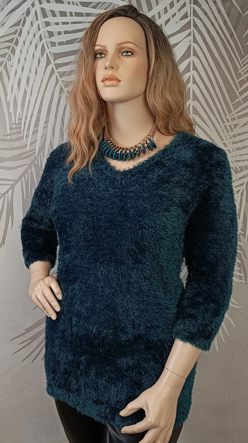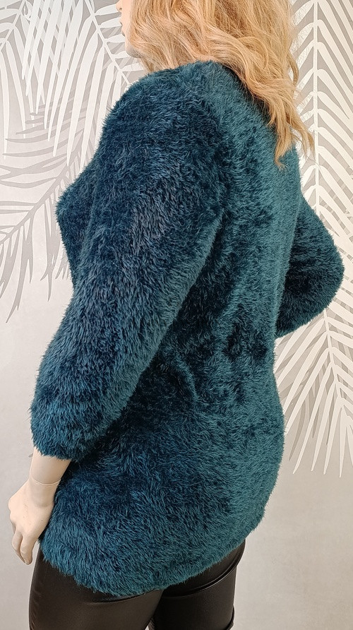 A pulóver a fotókon 46-os méretű próbababán látható.