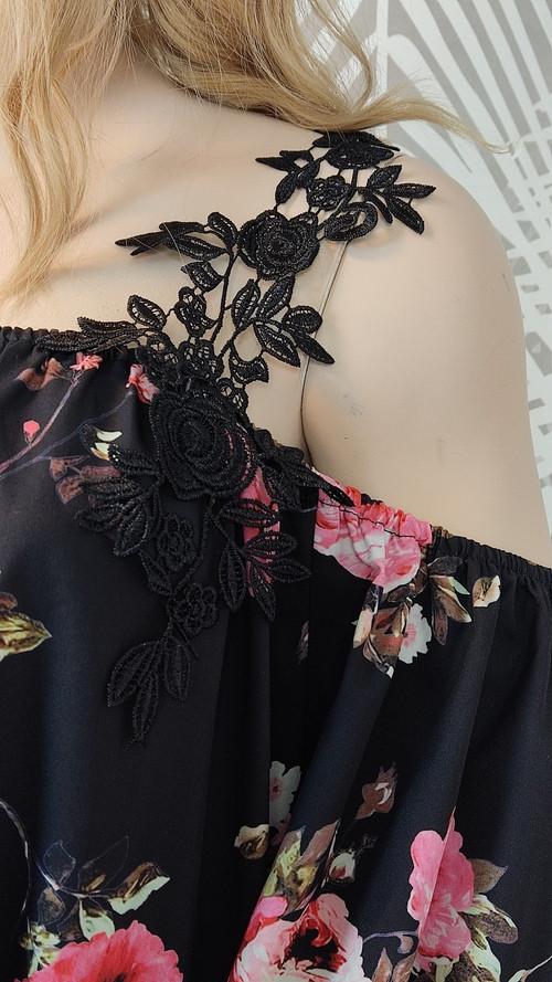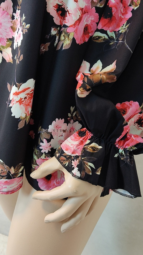 Romantikus, nőies és elegáns. A fekete alap színben még erőteljesebben érvényesül a rózsaszín virágminta, így fiatalos és divatos hatást kelt.
