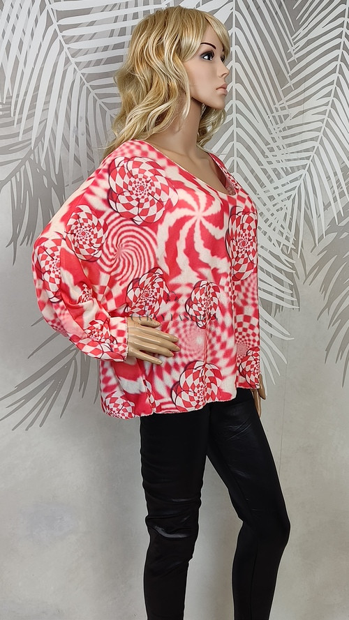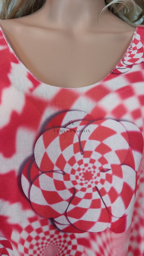 A piros és fehér színek dinamikus kombinációja különösen jól mutat sötét haj- és világos bőrtónusokkal, de mindenki számára izgalmas választás. Párosítsd egyszerű fekete nadrággal vagy farmerrel, hogy a felső mintázata igazán érvényesüljön. Egy letisztult nyaklánc vagy karkötő tökéletesen kiegészíti.