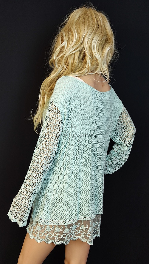 Romantikus és bohém eleganciát képvisel. A horgolt minta vintage hangulatot ad, míg a csipke modern, játékos részletként teszi különlegessé.
