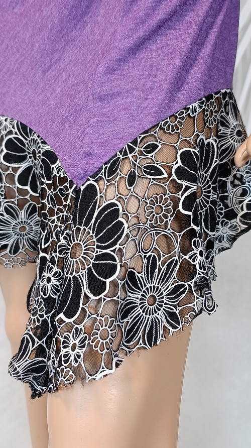 A lila árnyalat nyugodt, mégis nőies, az alján megjelenő csipkeszegély pedig elegáns, romantikus hangsúlyt ad.