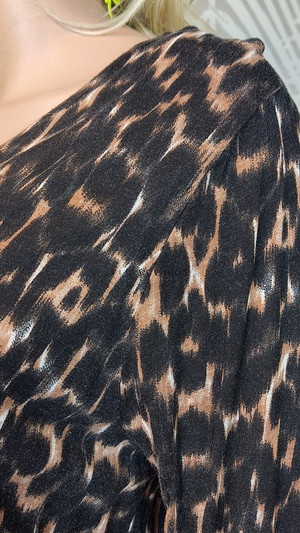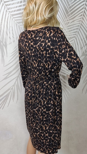 Ez a ruha tökéletes választás esti összejövetelekre, randevúkra vagy akár hétvégi kiruccanásokra is. A leopárdminta extravagáns, mégis ízléses megjelenést biztosít.