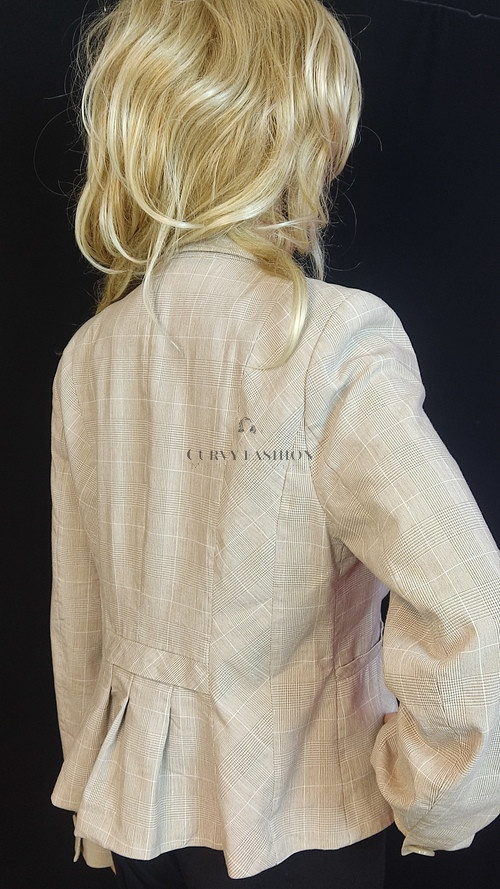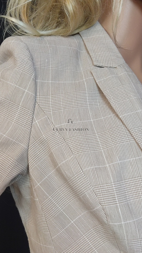 Klasszikus, nőies és kifinomult. A kockás minta modern, mégis visszafogott eleganciát sugároz, amely időtállóvá teszi a blézert.