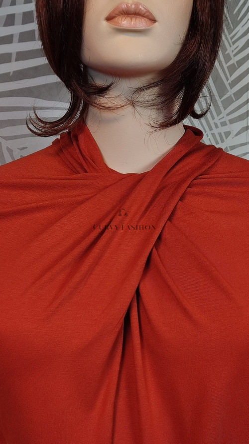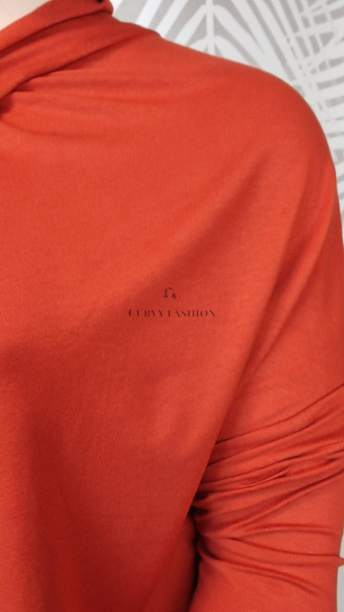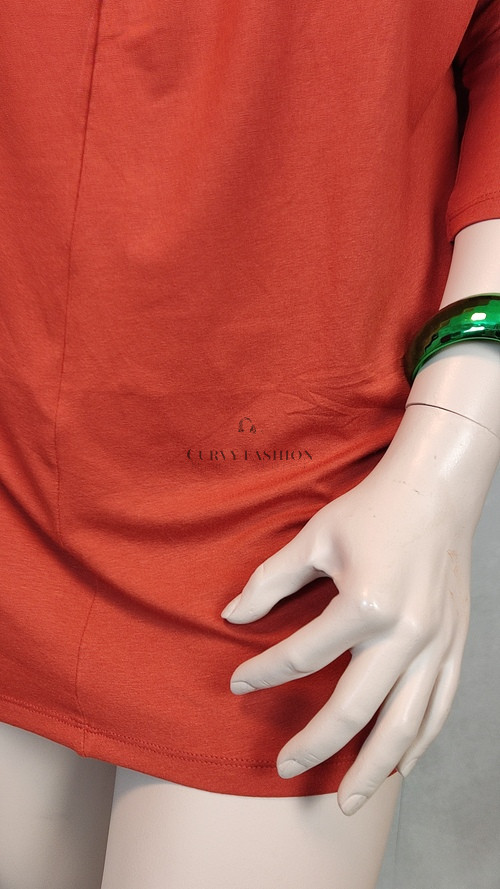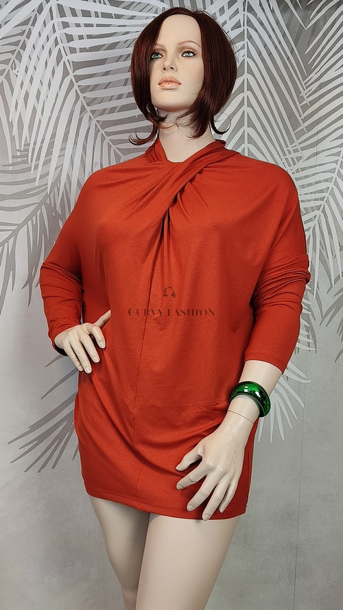Ez a tunika egyszerre sugároz modern eleganciát és kényelmet. Az enyhén fényes rozsdavörös árnyalat különleges karaktert ad a darabnak, amely azonnal vonzza a tekinteteket.