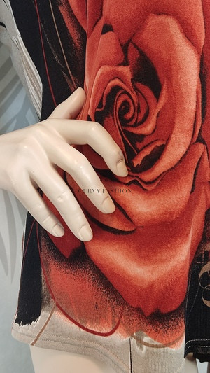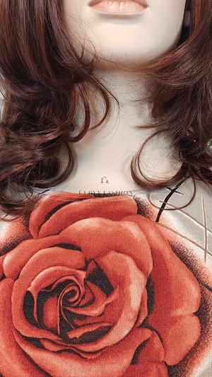 A nagy, vörös rózsaminta és a visszafogott bézs alapszín elegáns és nőies megjelenést biztosít, amelyet bármelyik stílusú ruhatárba könnyen beilleszthetsz. Rövid ujjai és könnyed szabása miatt tökéletes választás lehet önmagában is, vagy egy blézer alá rétegezve.