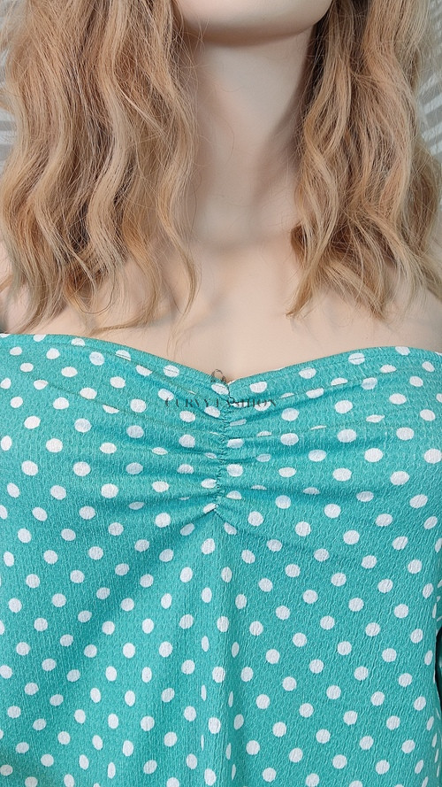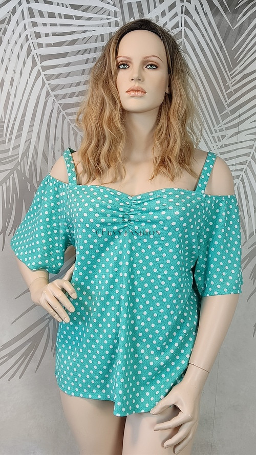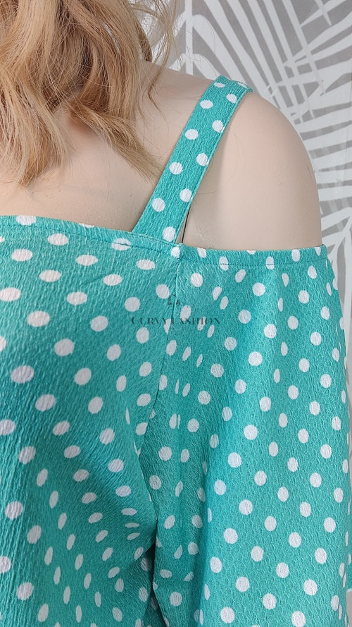 A türkiz árnyalat leginkább a Tavasz élénk és a Nyár hideg színtípusokat emeli ki, de frissességet sugároz szinte bárkin. Kombináld fehér nadrággal vagy szoknyával, hogy a pöttyös minta még jobban érvényesüljön. Kiegészítőkben választhatsz natúr vagy arany árnyalatokat a nőies hatásért.