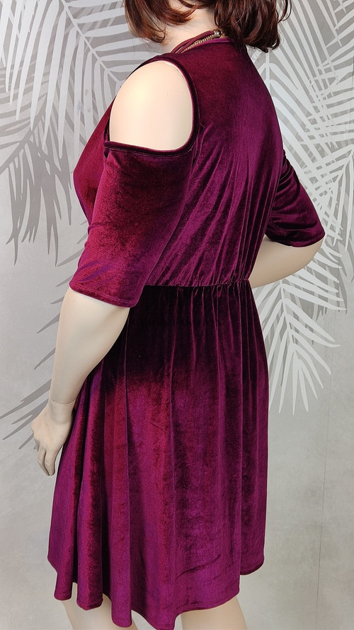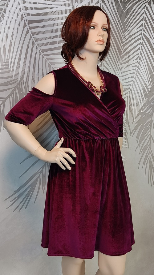 Elegáns bordó 48-s méretű bársonyruha, amely egyesíti a kifinomult stílust és a kényelmes viseletet. A Pink Clove márkától megszokott minőséggel, keveset használt, hibátlan állapotban. Hideg vállkialakítása és keresztbe szabott derékmegoldása optikailag karcsúsítja az alakot, miközben kiemeli nőies vonalaidat. A ruha finom tapintású, kellemesen puha anyagból készült, ami kényelmes viseletet nyújt egész nap.