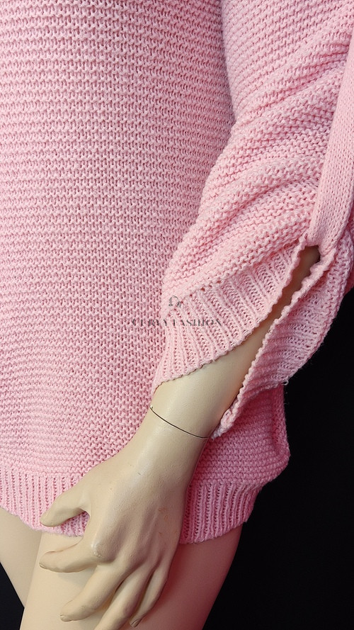 Lágyan nőies és lezseren elegáns. A púderrózsaszín árnyalat romantikus, fiatalos hatást kelt, a különleges ujjmegoldás pedig trendi, divatos részlet, ami játékosságot ad az összhatáshoz.