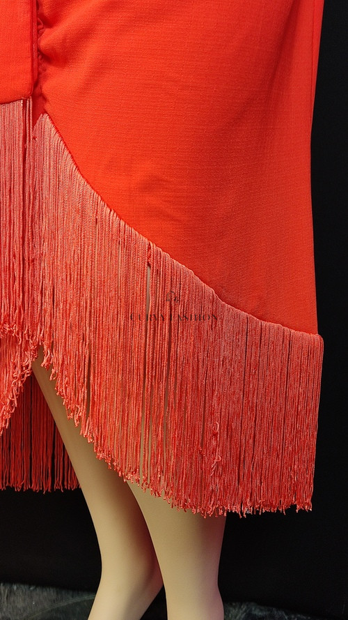 Extravagáns és elegáns egyszerre. A rojtdíszítés táncos, bohém hangulatot kölcsönöz, míg az élénk piros szín magabiztos kisugárzást ad.