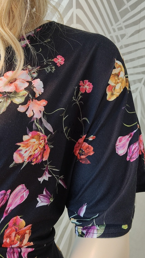 Modern, nőies és elegáns. A fekete alap időtlen klasszikus, a színes virágminták pedig romantikus, játékos hangulatot kölcsönöznek.