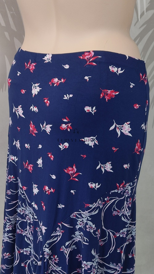 Párosítsd ezt a sötétkék virágmintás szoknyát a Curvy Fashion fehér vagy piros blúzaival, hogy friss, tavaszias megjelenést alkoss! Fedezd fel a kollekció további virágos és romantikus darabjait is, amelyekkel még harmonikusabb lesz a ruhatárad.