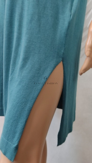 A ruha egyszerű, letisztult vonalai és laza szabása modern, divatos megjelenést biztosítanak. A széles nyakkivágás és a hosszan felsliccelt oldalak különleges, fiatalos hangulatot kölcsönöznek ennek az alapdarabnak. Az egyenes szabás elegánsan lezser megjelenést ad, amelyet viselhetsz akár önmagában, akár leggingsszel vagy szűk farmerrel is.