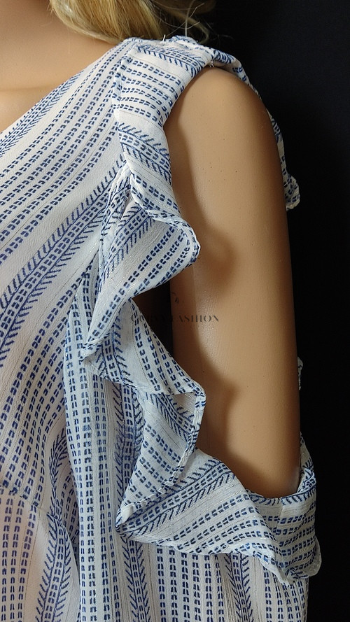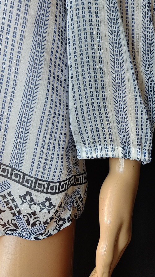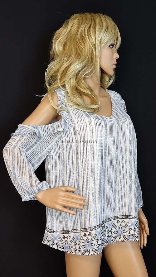 Romantikus és elegáns, finoman modern részletekkel. A függőleges csíkozás karcsúsító hatású, a csipkés szegély pedig nőies, lágy hangulatot sugároz.