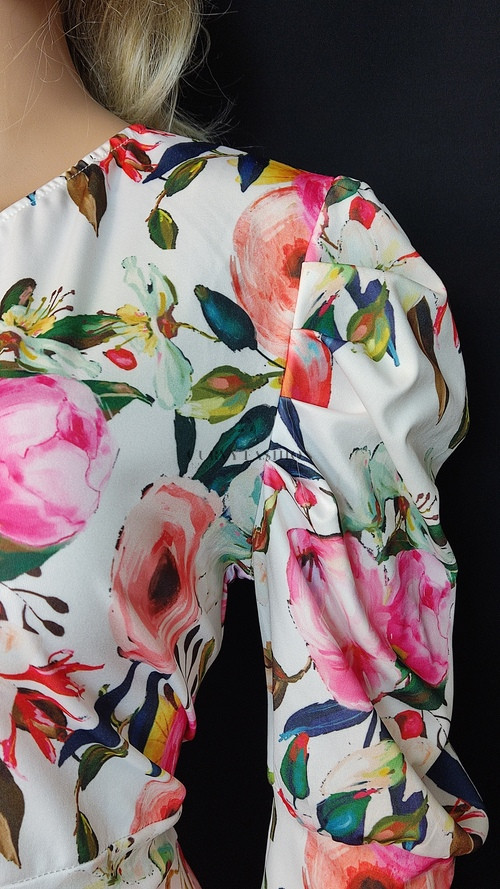 Nőies, modern és elegáns stílus, amely játékosan ötvözi a romantikus virágmintát a trendi szabásvonallal.